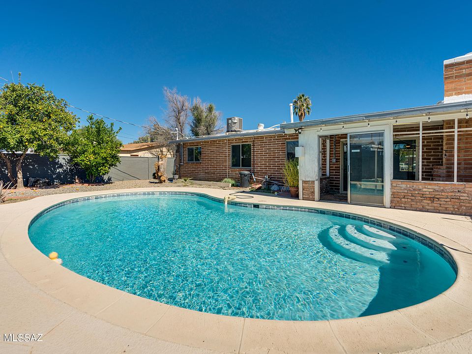 Take a look at this Recently updated 3 Beds 2 Baths Solid brick Ranch style home with gorgeous contemporary interior vibes. This East side gem boasts enclosed patio, sparkling pool, soothing fireplace, modern tile flooring, stainless steel appliances, huge lot. Walking distance to Palo Verde High and Terra Del Sol Park. Priced to sell fast !
