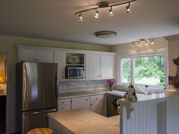Beautifully maintained 4 bedroom cape in South Amherst with spectacular views. This home features an open floor plan with bright light throughout. The painted wood wainscoting on the first floor and up the stairs with accents on the 2nd floor adds to the charm. The first floor bedroom is being used as dining room, could be an office, den, or first floor master. During the warmer weather, enjoy the large screened porch off the back that looks out over acres of conservation land and the Pelham hills beyond. Access to the Brookfield walking trail on adjacent property. Exterior just painted. Central air added, and heating system replaced in 2012.