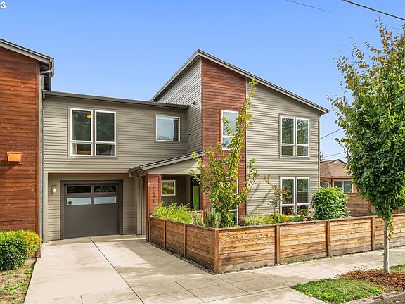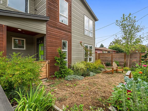 Be it Montavilla, Mt Tabor or somewhere in between, this contemporary home is placed perfectly in the middle of everything there is to love on the east side of Mt Tabor. Upon pulling up, it's impossible to miss the gated front garden, an ideal use of a space that often gets forgotten. A perfect place to grow those summer veggies, let the dogs play, or relax in a lawn chair. Heading inside you'll find an open concept main level with the kitchen in the center of it all. A living room with built in shelving, gas fireplace and room for that oversized couch you've been eyeing, a kitchen island with endless prep space, and a dining room that opens up to the back patio. Eat inside or outside, your choice! It's really quite lovely. Upstairs the primary suite has vaulted cielings, a walk-in closet and 5-piece bathroom. There are two additional bedrooms, both with walk-in closets, a second full bath and laundry room. Each bedroom placed perfectly without shared walls for optimal privacy, all with an abundance of natural light. We think you'll fall in love, slightly bias but come see for yourself! [Home Energy Score = 8. HES Report at https://rpt.greenbuildingregistry.com/hes/OR10149523]