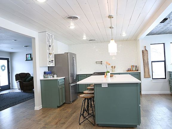 Incredible opportunity for 1961 sq ft home with complete top of the line remodel and 2.28 acres of land inside Burkburnett city limits. Stunning kitchen with an open floor plan and vast island perfect for entertaining. Kitchen features custom cabinetry, quartz countertops, stainless appliances throughout and gas range with pot filler, and walk in pantry. Spacious living and dining rooms with new hardwood floors, neutral walls and a black brick fireplace. Large isolated master suite with his and hers walk in closets. Spacious master bathroom with double head showers and large soaking tub. Laundry room featuring expansive cabinetry with folding table and wash sink. Double garage with carport. Metal carport perfect for RV and boat storage. "She Shed" with raised garden beds perfect to start your kitchen garden. Water well on property. Approximately 1.75 acres great for livestock or further expansion. This house is MOVE IN READY!