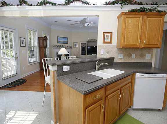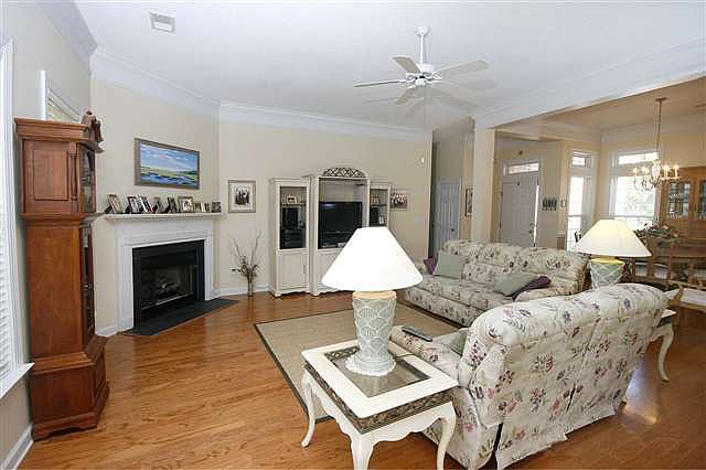 Light and bright split bedroom home backing up to a wooded conservation area in the Tradition Community! The open floor plan features the great room with a corner gas fireplace, beautiful hardwood floors that continue into the foyer, formal dining area, hallways and master bedroom. The well planned kitchen has corian countertops and tile backsplash, breakfast bar, pantry, tile flooring and slider to patio. Screened porch is a great place to relax and enjoy the peaceful setting and private yard. Double doors lead to spacious Master Suite featuring large walk-in closet, double sinks, tub, shower, and tile flooring. Two other guest bedrooms and full bath complete the home. Move in condition! Amenity package includes pool, tennis, clubhouse, sidewalks for walking/jogging. PRIVATE BEACH ACCESS to Litchfield By The Sea with ample parking, sundecks, outdoor showers, restrooms, handicap access to the beach, and fishing lakes. Marina nearby. Golf membership available.