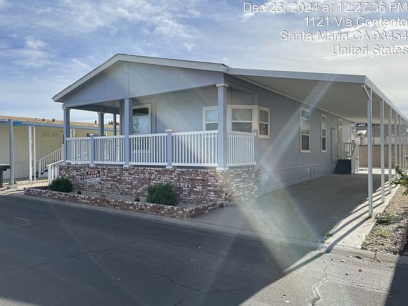 This gorgeous 2023 Two-Bedroom Two-Bathroom home plus den is in the Community of Casa Del Rio, in the city of Santa Maria. Brick skirting and energy efficient windows surround the home and make for a stylish and cost-conscious investment. The home features hardwood style flooring in the kitchen, living room, and den, with soft and comfortable carpeting in the bedrooms, ensuring easy maintenance and cozy lifestyle living. All the rooms have ceiling fans for additional cost efficiency, and the main bedroom features an on-suite bathroom that includes dual sinks, a sunken tub, and a large shower, further adding to the overall sense of luxury the home provides. The kitchen features everything needed for a great home cooked meal, including a gas oven/range, suspended microwave, dishwasher, and lots of cabinet space. The home also features an open floorplan, perfect for either entertaining guests, or simply spending a quiet day in your own spacious home. Casa Del Rio is a professionally managed 55+ community with amenities that include a swimming pool, hot tub, and a large clubhouse. There are events held regularly in the clubhouse, and management focuses on providing a welcoming community atmosphere. Please call us today to schedule a tour of your new home. We look forward to meeting with you soon.