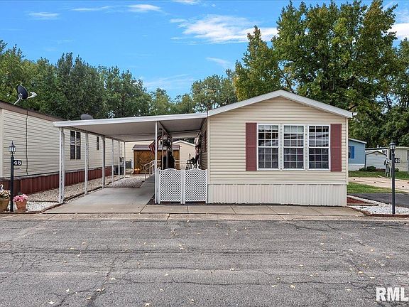 Completely move-in-ready mobile home in a 55+ community with 2 bedrooms and 2 bathrooms. You'll enjoy the covered parking and walkway to your front porch with an accessible ramp and stairs. Step inside to the spacious living room with tall ceilings. The kitchen at the front of the home has plenty of cabinets for all your storage needs plus extra shelving that stays in the pantry/laundry area. Washer and dryer stay with the home! The guest bedroom is located right next door to a full bathroom while the primary bedroom has an extra posh en suite with 2 showers, remodeled in 2018. The roof on the home was replaced in 2021. The refrigerator was also purchased in 2021. This property has a nice storage shed and patio for outside entertaining. The leather couch in the living room can be purchased with the home for the ultimate in moving convenience!! If you prefer to purchase the mobile home and relocate it, that is certainly an option as well.