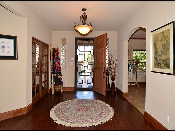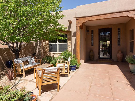 STUNNING semi-custom single level home in the high demand community of Cabezon, with nearby park, pool, top rated schools & shopping! Enchanting courtyard entry & custom front door! Gorgeous open floor plan, loaded with amenities: handsome hard wood & tile floors, crown molding, solid wood interior doors! Spectacular great room has tongue/groove beam ceiling, kiva gas log fireplace, wet bar with stacked stone, granite & wine cooler! Deluxe kitchen equipped with stainless steel appliances, 6 burner gas cooktop, trash compactor, custom cabinetry with under cabinet lighting, granite & stone! Large master suite: walk-in closet & luxurious bathroom: jetted tub, separate tiled shower, his/her vanities with copper sinks & granite! Beautiful backyard: covered & open patios, water feature & VIEWS!