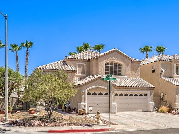 4BED/3BATH Corner home in the highly desirable Green Valley community. Located in the popular Green Valley/McDonald Ranch areas, offering a sought-after living experience. Home is on a cul-de-sac street. Separate Living and family room. Spacious Layout including a downstairs bedroom with an adjacent full bath, the home provides flexibility & comfort for the occupants. Vaulted Ceilings and Fireplace. Cozy dual -sided fireplace in family room. The kitchen is equipped with stainless steel appliances, ample cabinet space & granite counters. Laminate wood flooring in the living & family room. Tile flooring in wet areas. Finished backyard with real grass & concrete. Extra shed on concrete pad for storage is included. Home is adjacent to community walking trails! The home's proximity to the Airport, Las Vegas Strip, Allegiant Stadium, & EZ access to the 215 freeway make it incredibly convenient for commuting and enjoying nearby amenities.