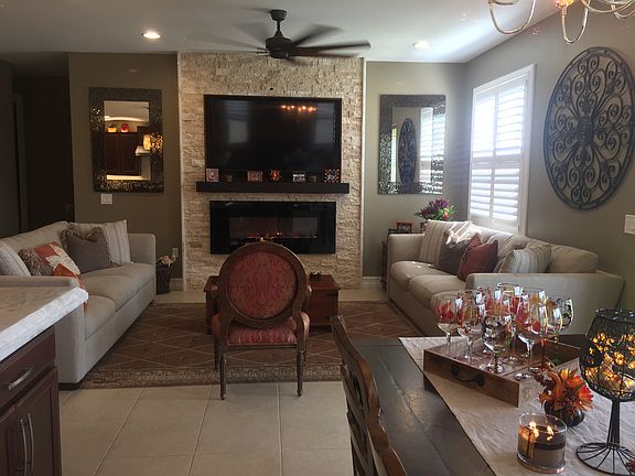 This home has it all! The kitchen boasts brand new Cristallo countertops, 2 dishwashers, a sub-zero refrigerator, 2 wine coolers, and a Wolf coffeemaker! All appliances are top of the line! Check out the beautiful Wide Crystal Linear Chandelier with Swarovski Crystals! There is tile throughout the main floor and an electric fireplace with modern flames. Plantation shutters and custom lighting complete the elegance. The hallway bath has a tub and shower with glass door. The second floor is carpeted throughout and features a second living room with TV. Enjoy your upstairs laundry! The master bedroom has a bonus sitting area and double walk-in closets. Master bath has a soaking tub and shower and features custom tiles. Step outside to your outdoor oasis including a grill and double refrigerator and check out the gorgeous view of the fountain in the lake and preserve.