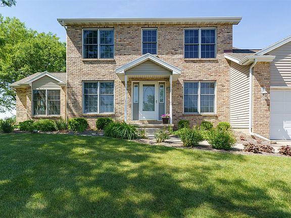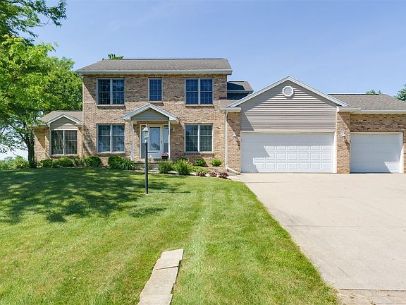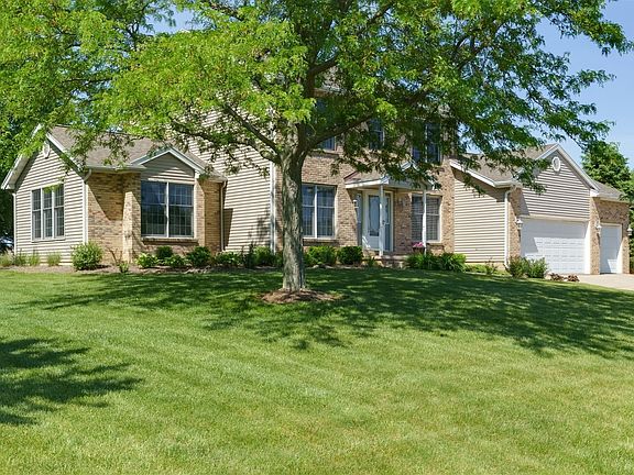 Reduced $7,000 Extremely well cared for home in desirable Hunters Knoll. This home has low maintenance vinyl siding and brick. Professionally landscaped with 2 mature apple trees, 1 pear tree and 11 blue spruce trees adding privacy and providing a wind break. Wonderful 3 season room with heat vents, a sky light which can be opened, wet sink, perfect for entertaining. Kitchen has newer stainless steel appliances, double oven, granite counter tops with a deep granite sink and Schrock cabinetry. Roof (2009) Windows (2010) Water heater (2014) NEW carpet in the living room, stairs and hall. Master suite has cathedral ceilings & just had new carpet installed in it and in the walk-in closet. There is a Generac backup generator... And a park at the end of the street with no through traffic. A MUST SEE HOME!