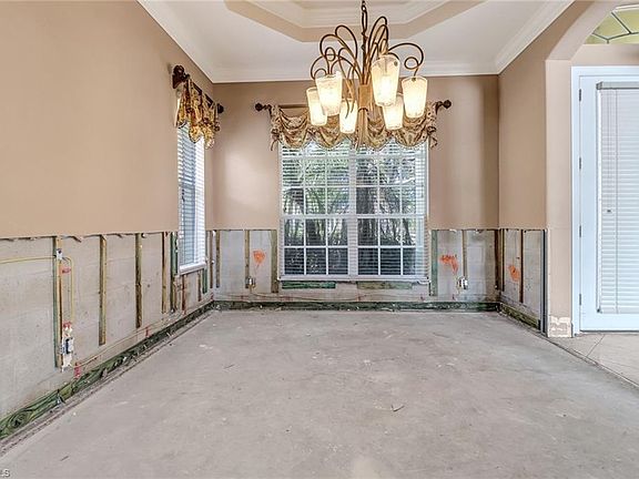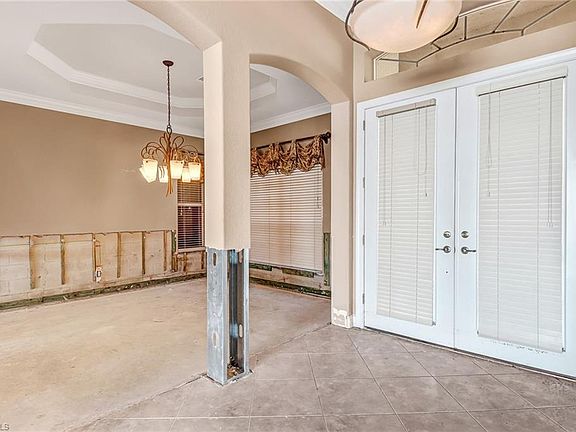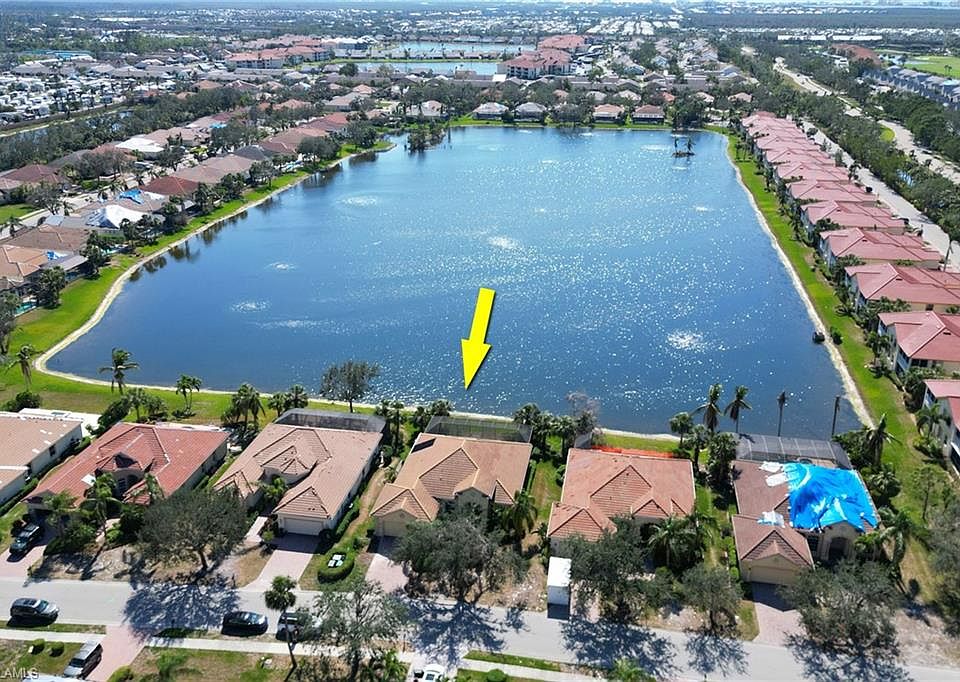 INCREDIBLE SOUTHERN EXPOSURE AND LARGE LAKE VIEW - Take advantage of the opportunity to redesign this home to your tastes and enjoy a breathtaking view rarely available this close to Fort Myers Beach and Sanibel. The open concept floorplan makes entertaining easy with abundant natural light, soaring ceilings and crown molding throughout. Notable features include double entry glass doors, electric hurricane shutters on all windows and spanning the lanai, formal dining space that could be an office/den, tray ceiling details and more. Outside is an oversized covered patio and screened in swimming pool. This property was damaged by Hurricane Ian and initial clean out performed. Coco Bay is a small community of newer construction homes just minutes to FMB, Sanibel, and popular shops and restaurants.