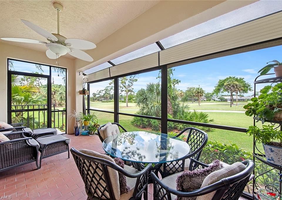 Most sought after units in Fairway Woods. First floor, end unit, 2 bedrooms with a den, AND A GOLF COURSE VIEW. The floors have all been updated with luxury vinyl throughout the condo. The floors have an elegant feel with grays and browns. The kitchen and the bathrooms cabinets have beautiful granite. The master shower has been reconfigured to offer a large size shower. The two-car garage is attached with direct access into the condo. The Forest Country Club has TWO 18 hole championship golf courses and a first-class tennis program. Membership to the Club is not required to live in the community. This is conveniently located close to beaches, airport, shopping, and Gulf Coast University (Some listed amenities require Club membership)