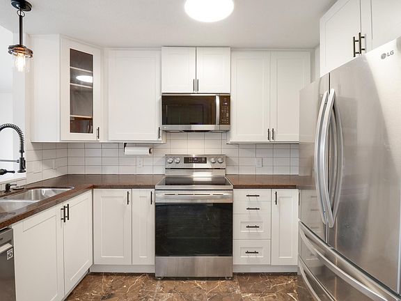 The updated kitchen is a showstopper — granite countertops, marble floors, a breakfast bar, and a separate dining area — perfect for morning coffee or hosting friends.
