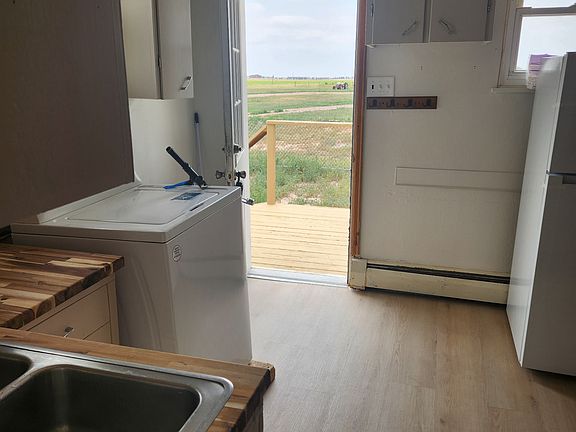 Attractive 2-bedroom, 1 bath bungalow renovated and fresh with new interior paint, new carpet, new vinyl plank in the kitchen, new refrigerator, newer clothes washer and dryer, new window coverings, and new countertops. Has a large fenced yard. Very large deck with mountain views, a tornado shelter, and is only 1.5 miles from the city of Nunn. Room for RV parking, big rigs, and large trucks. Two horses allowed for an additional $150/month per horse. Must bring own corral or fencing. Additional land for use for additional price. No out buildings are included. Utilities are not included. Must be Smoke/Drug Free. No cats, Dogs up to 50 lb dogs negotiable with breed restriction. (No Pit bull, Dobermann, German Shepherd, Rottweiler, wolfdog)