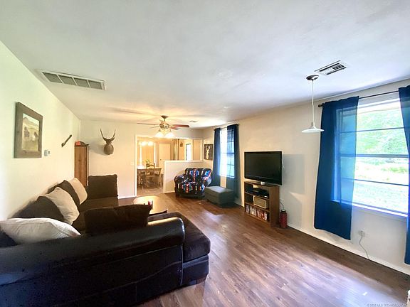 Cozy home on 1 Acre with 2 bedrooms, 1 bath, Formal dining, Formal Living room open to kitchen. Inside utility room, wrap around porch & secluded. Detached shop/storage building.