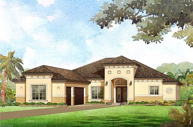 In the heart of North Naples! The Ventalo is a high curb appeal home with 3 car side entry garage, brick paver driveway, stone trim work & ornate front entry double doors. Open concept Great Room plan with high ceilings, the luxurious master suite is located on one side of the home while the secondary bedrooms are at opposite ends of the home. This upscale home features crown molding, oversize granite kitchen island, wall ovens, stainless steel range vent hood and gas range, oversize walk-in pantry and generous master suite closets. Spacious eat-in kitchen with seamless glass window overlooks your beautiful lanai. Listed price of home to include a pool, spa, outdoors kitchen, impact resistant glass, gas package and Buyers choice of upgraded finishes. Tucked away from main roads, Marsilea is an intimate gated community consisting of 18 estate homes on spacious home sites with golf course quality manicured lawns & is conveniently located close to shopping, dining, area beaches & parks, NCH Hospital & the popular Mercato Center. Interior photos are of a model home, not of the actual home.