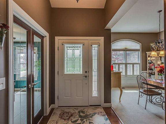 Stunning Villa in Gunwood Crossing. Beautiful 3 bedroom, 3 bath with office that could be used as a 4th bedroom it has a closet. Seller has many upgrades shows like a model home. Main level with split bedrooms, office with French Doors, Formal Dining, Gourmet Kitchen with Granite, Hardwood Floors, Maple Wood Cabinets with Soft Close Doors and Drawers, Stainless appliances, Screen in Porch with 2 Patios and Great Room with Stone Fireplace. Lower level you will find egress windows in family/game room with wet bar with small frig and ice maker. Bedroom with full bath has egress window and a 11 x 11 walk in closet. Then watch your favorite movies in your own theater yes this home has it all. Garage has been insulated and finished.