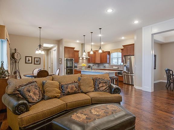 This beautiful, quality built ranch style home on 1.209 acres is waiting for YOU! From the welcoming front porch into the gracious foyer w/10' ceilings thruout, you will see the office, light and open great room, dining room and fabulous kitchen, w/walk in pantry, island and eating area. There are 2 bdrms on 1 side with the master suite on the other, providing privacy. So many upgrades and high end finishes, like travertine, hardwood floors, slab granite, instant hot water, upgraded appl. & cabinets. The basement with fun family room w/wet bar, bdrm and full bath, tons of storage and 9' ceilings that make it feel airy! To enjoy the fabulous outdoors, a big covered patio with built in fire pit and professional landscaping. An attached 4 car garage will hold your vehicles. Then there is the 40x30 foot outbuilding w/11'and 13' doors, a loft for storage and room for all your FUN STUFF! And even more, a fenced garden area with built in garden boxes, ready for spring! Come see!
