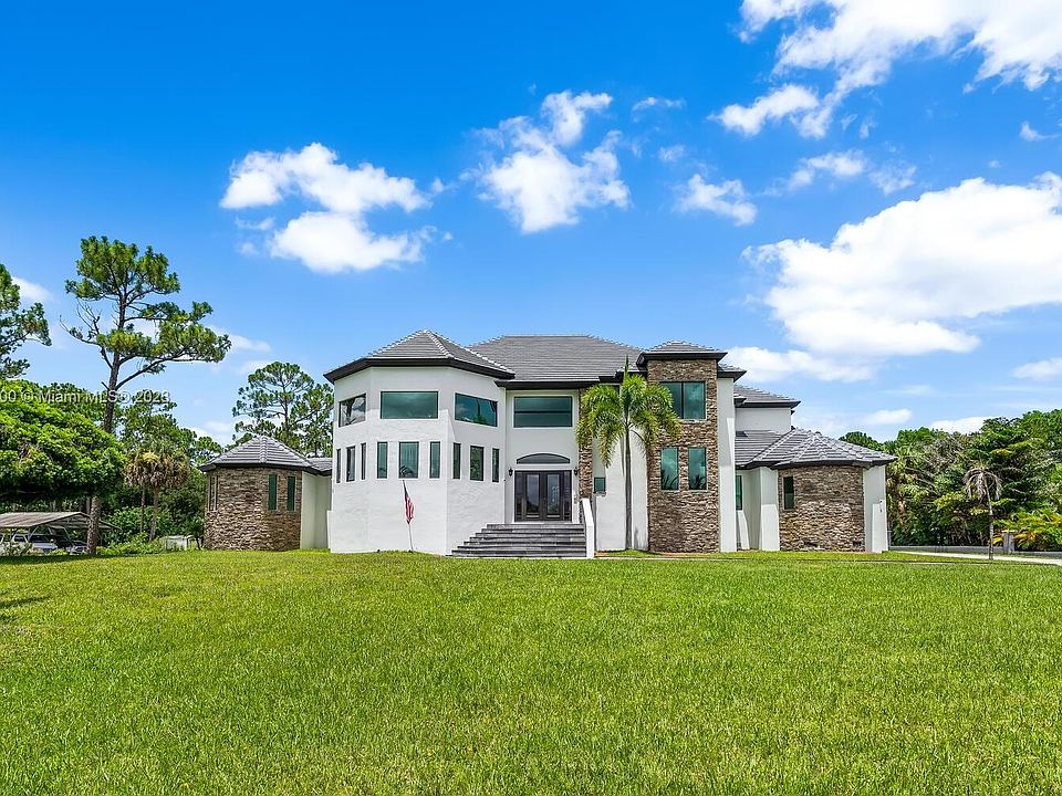 Welcome to "The Castle". With 5300 sq ft under AC, this stunning, light-filled home, is one of the largest residences in Jupiter Farms. Situated on an elevated acre+ lot, this unique property features an open floorplan, 35' ceilings, custom impact windows (2022), new roof (2021), and a floor to ceiling renovation. The kitchen has granite, SS appliances, gas cooktop, double oven, wine cooler, etc. The spacious master suite includes a private balcony overlooking pool, large walk-in closet, and a magnificent bathroom. This is a rare opportunity to own a private country estate at less than $400 per sq. ft.! 48 hr notice required. Lease expires 10/24, but tenant has agreed to vacate in 90 days or sooner. New upstairs bed/bath (502 sq ft) not yet updated on tax rolls. All permits are closed.