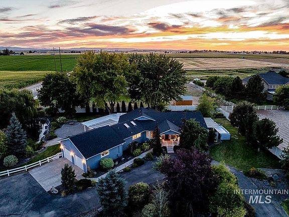 Nestled on 2.48 tranquil acres, this stunning home minutes from Lake Lowell & wine country offers the perfect blend of modern luxury & country living. The spacious, light-filled kitchen is a chef’s dream, featuring granite counters, soft-close cabinets, a 12 ft island, & built in stainless steel appliances. Beautiful hardwood floors in the kitchen & dining areas, combined with custom built-ins, create ideal spaces for entertaining guests. Recent updates include new carpet, tile, & roof in 2024. The main-level master suite is a private retreat with a spa-like bathroom, rain shower, double vanity, & private deck with a therapeutic swim spa. The bright basement offers 3 additional bedrooms, a family room, hobby room, & abundant storage. Outdoor highlights include a 26x44 shop with three 10 ft garage doors, a dust vacuum system & compressor system, 1,000 sq ft Trex deck, peaceful pond with waterfall, gas fire pit, vineyard, orchard, raised garden beds, amazing sunsets, & frequent visits from wildlife.
