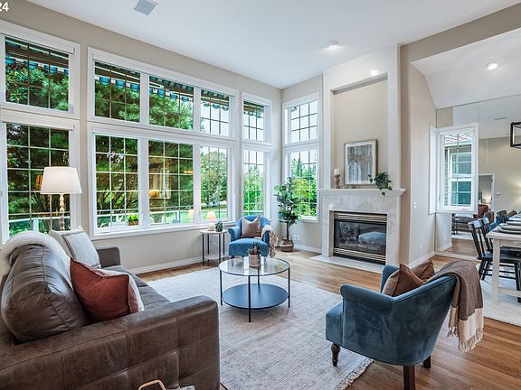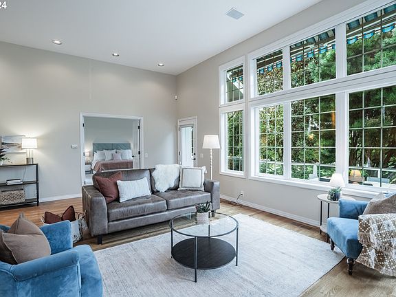 Discover elegance in the Claremont neighborhood through this one-level Oxford floorplan home, perfectly nestled in NW Portland with breathtaking views of the golf course’s second fairway. Boasting three spacious bedrooms and two well-appointed bathrooms, this meticulously maintained residence features beautiful hardwood floors, except in the two cozy bedrooms. The den / third bedroom also showcases elegant hardwood, complementing the home's sophisticated design. High ceilings and an open-concept great room seamlessly merge the living, dining, and kitchen areas, creating an ideal space for intimate moments and lively gatherings. A large kitchen cook island and eating bar set the stage for effortless entertaining.The primary suite is a sanctuary, offering custom built-in cabinets and an expansive walk-in closet for all your storage needs. The upgraded ensuite bathroom exudes luxury with a double sink vanity, a walk-in shower, and a soothing jetted tub. Outside, the expansive deck has a full-coverage awning, providing shade while you soak in the stunning golf course views.The oversized, fully finished two-car garage offers abundant cabinetry and attic access for additional storage, while a workshop under the deck provides the perfect space for hobbyists. Located near the vibrant Bethany area, you’ll enjoy easy access to dining, entertainment, and parks. This home offers the perfect blend of serene golf course living and convenient urban access, where comfort and thoughtful design meet. Embrace a life of luxury and tranquility in this extraordinary home!