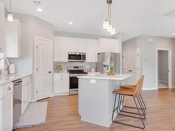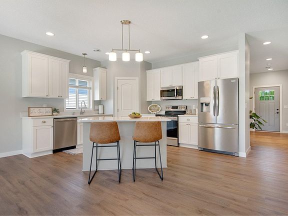 High quality one level living home with in floor heating with NO association fees! Enjoy all the conveniences of living on one level and still enjoy the privacy of your own yard to landscape, garden and relax. This home is complete and ready for a quick closing! The moment you walk-in you will feel the high quality finishes and wonderful living spaces. A welcoming entry leads to a stunning kitchen with custom cabinetry, quartz countertops, walk-in pantry and upgraded appliances. Laminate plank flooring throughout the kitchen/dining/living areas. Custom box vaults accent both the living room and primary suite. Primary bedroom also boasts large walk-in closet and private bathroom with custom double vanity with solid surface counters and gorgeous ceramic tile flooring. A 2nd bedroom, flex room, and laundry room round out the living spaces. Be sure to note the dual heating system with high efficiency in-floor heating and forced air. Exterior finishes are all in - sod, gutters, concrete landscape edging, patio and more. This is the opportunity you have been looking for!!