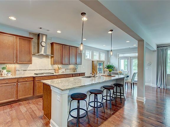 • Kitchen Features: Breakfast Bar, Cabinets Stain, View to Family Room, Stone Counters, Kitchen Island, Pantry Walk-In, Solid Surface Counters