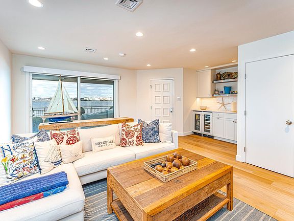 Boasting spectacular floor-to-ceiling waterfront views on all three levels, and with pristine sandy beaches a short one-block stroll away, savor panoramic tranquil sunsets and the beauty of the active waterways from this elegantly appointed and rarely available multi-level bayfront townhome located at the exclusive Point of Longport. Completely transformed last year with impeccable design detail, this four bedroom/three bath residence features dramatic vaulted ceilings, new and spacious exterior decking and railings on all three levels along with new customized interior staircases and high-end custom cabinetry. The lower level encompasses a spacious media room with wet bar and walkout to an al fresco waterfront dining area, along with a private office and full bath. The second floor boasts a newly upgraded kitchen with quartz counters, dining area and a cozy living area with a gas fireplace encased with beautiful ship lap all overlooking the mezzanine level living room and outdoor entertainment area on the bay and seen from above through newly-installed steel encased tempered glass railings. The third floor offers a stunning bayfront private main ensuite with endless views of the bay and skies, as well as two guest bedrooms, a full bath and new state-of-the-art washer and dryer. Additional highlights include three-car parking, two new multi-zone natural gas HVAC units, tankless hot water heater, impressive custom window coverings, new flooring and carpeting throughout, updated lighting and storage area for beach chairs and bikes and an outdoor rinse shower for use after a day on the beach. There has been nothing like it available in Longport until now.