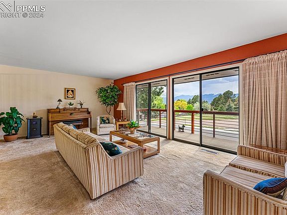 Welcome to 1619 Babcock Lane, a charming home with original mid-century modern touches, nestled on a quiet dead-end street with breathtaking mountain views. As you step inside, you'll be greeted by sweeping views of Pikes Peak and beyond from both living rooms, the primary bedroom, and the west-facing deck, creating a serene and picturesque backdrop for everyday living. The family room features vaulted ceilings, a cozy fireplace, and vintage wet bar, while the conjoining sunroom provides a perfect spot to soak in the natural light year-round. The primary bedroom with ensuite bathroom is complimented by 2 additional bedrooms and a full bath on the main level. Downstairs you will find an additional bedroom and bathroom, 2nd living room with mountain views, and a laundry room. The oversized garage provides ample space for parking and storage, catering to your practical needs, and there is plenty of additional parking on the secondary driveway that leads to a door straight into the kitchen. Additionally, this home is conveniently located near plentiful shopping, ensuring that all your daily necessities are within easy reach. With its large lot and captivating views, this home offers a rare opportunity to embrace the beauty of Colorado's landscape. Don't miss out on the chance to make this extraordinary property your own and experience the best of Colorado living!