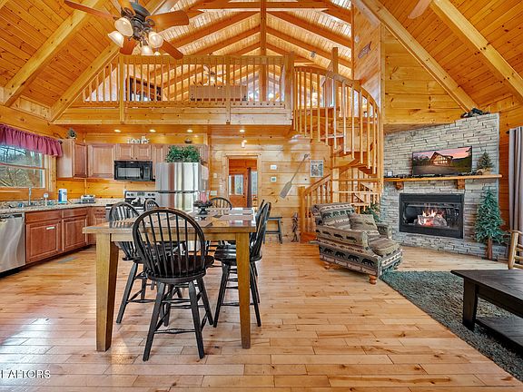 WOW FACTOR WITH ALL THE BELLS AND WHISTLES WITH 5 STAR REVIEWS WITH A 10 OUT OF 10 RATING ON VRBO AND OVER 200 REVIEWS! CAN SLEEP UP TO 12 AND HAS AVERAGED AN OUTSTANDING $106,499 GROSS INCOME FOR THE LAST THREE YEARS! ''SCENIC SANCTUARY'' IS A WELL ESTABLISHED INCOME PRODUCING 3BR/3.5 CUSTOM LUXURY LOG CABIN RETREAT WITH PANORAMIC MOUNTAIN VIEWS, 3 KING BEDROOM SUITES, STATE OF THE ART GAMEROOM, THEATER ROOM, AND MORE! Being sold fully furnished and turnkey! Nestled amidst the serene beauty of the Smoky Mountains, this exquisite log cabin offers an unparalleled blend of rustic charm and modern luxury. Spacious living room with birch hardwood floors, stone accented gas fireplace, expansive windows that bathe the interior in natural light showcasing breathtaking mountain vistas and bringing the outdoors in, soaring vaulted ceilings, and an open eat in fully equipped kitchen with granite countertops and stainless appliances. The state-of-the-art game room, situated in the loft, boasts its own half bath, pool table, foosball, TV, and a private covered deck, providing an ideal space for leisure and relaxation. Experience cinematic adventures in your own home theater, designed for the ultimate viewing pleasure. Master Suite Sanctuary: Located on the main level, the master suite features a cozy fireplace, a luxurious jet tub, and dual vanities, offering a spa-like retreat. On the lower level you will also find two additional King Master Suites and a private deck. To save the best for last, you will enjoy taking a dip in the bubbling hot tub overlooking the mountains at this private mountain oasis. Conveniently situated just 5 miles from the vibrant attractions of Pigeon Forge, yet secluded enough to serve as your private mountain haven. *CHECK OUT THE 3D VIRTUAL WALK THROUGH