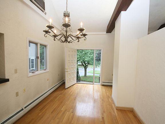 This large three bedroom apartment in Newton Highlands is sensational and the location is EXCELLENT! The apartment is flooded with sunshine throughout the entire day while the tall ceilings create a magical sense of space. The apartment includes a living room and dining room - both with 18 foot cathedral ceilings! The eat-in kitchen is dramatic with black countertops, slate gray floors and stainless appliances. There are also three bedrooms, a study / home office, and a three-season private porch. There are hardwood maple floors in the bedrooms and oak floors in the living and dining rooms. A washer and dryer is located in the apartment and off-street parking is also included. The apartment is heated by a modern, highly efficient, gas-fired hot water boiler. Off-street parking is included. The location of this apartment, in the very desirable village of Newton Highlands, is perfect. It is in a home located on a large wooded lot. The MBTA Riverside line, Newton Highlands Station, is only a two-minute walk away. The village of Newton Highlands, with all of its wonderful amenities is just a three-minute walk, and Newton's Crystal Lake is just down the road. The monthly rent is $3,200. To ask questions, or to schedule an appointment to see the apartment, call Margo, the owner.