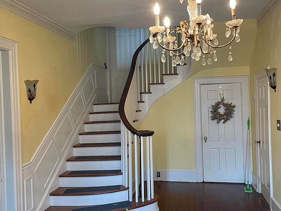 Seize the opportunity to own this stunning 2-story colonial brick home in the desirable downtown district! Featuring a private driveway with parking at the rear, this charming home offers three bedrooms and 2.5 bathrooms, including a spacious main bedroom with an en-suite bathroom for ultimate privacy. The entryway boasts a grand staircase that welcomes you as soon as you step through the front door. Inside, enjoy elegant pocket doors, a cozy fireplace, and unique built-ins, including a butler's pantry station. A convenient staircase leads directly to the kitchen, combining both style and function.