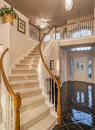 Walnut Creek North home with 5 bedrooms, 4.5 baths, 3 car garage, pool and a .47 acre lot. Great floorplan with a master bedroom on each floor - each with a jetted tub in the bath. 2 bedrooms plus a study down, 3 bedrooms plus a gameroom upstairs. Island kitchen, soaring ceiling in the living room and 3,900 sq ft.
