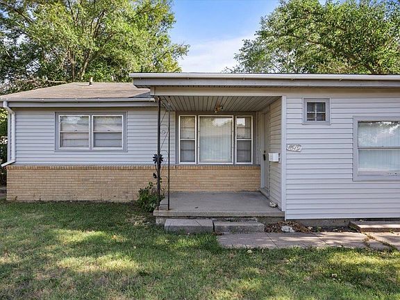 This three bedroom, one bath ranch home is ready for your touch. It features a partial brick exterior and original hardwood floors throughout. The open living room flows into the dining room, where sliding doors provide access to the back patio, offering pleasant views for dining and entertaining. The kitchen showcases rustic brick on a partial wall, dividing it from the dining area. With three spacious bedrooms and a full bath, this home has potential for customization. The two-car detached garage is accessible via the alley, and a storage shed is available for tools and lawn equipment. Located close to a park, restaurants, and with quick highway access, this property is very convenient. Schedule your private showing today and see the possibilities for yourself before it's gone!