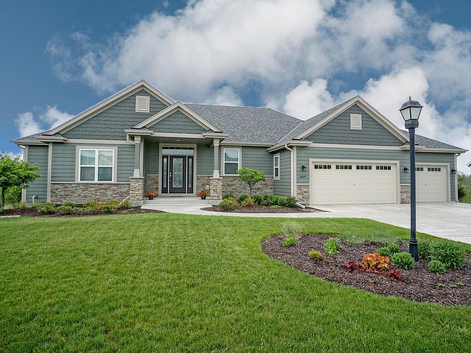 Remarkable split bedroom ranch home overlooking the Fox River Conservancy in Mukwonago's Fox River View! Plenty of curb appeal with the partial stone exterior and covered front entrance. Interior offers over 3000 sq ft of living space with the finished walkout lower level. Great room has gas fireplace and large windows with amazing views. Open kitchen with granite countertops, breakfast bar island, pantry, and SS appliances included. Master suite includes large walk-in closet and master bath featuring dual sink vanity and oversized tile shower. Main floor laundry and mud area. Open staircase to finished walkout lower level with family room, full bath, 2 additional bedrooms, and 2 storage areas. Huge 3.5 car garage. Relax on the back yard composite deck, lower patio, or firepit area!
