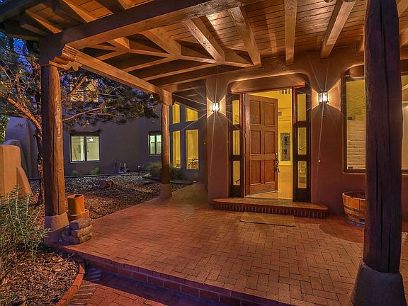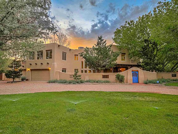 Where the living is easy...Tinnin Farms a Los Ranchos estate to be loved. The entry courtyard opens gracefully to bosque cottonwood trees shading the contemporary southwest pueblo home. Sunlight streams through the canopy of leaves and filters onto adobe walls welcoming you home. Set on one fully landscaped acre with thoughtful gardens and room to roam, the comfortable residence boasts tremendous natural lighting, hardscape flooring, and a functional five bedroom floorplan with home office and delightful indoor/outdoor living areas. Formal living and dining rooms, open floorplan kitchen with oversized island, storage pantry and nook. Oversized master suite with private decks and sitting room. Recreation/Hobby, three car garage, refrigerated air, and vinyl pool.
