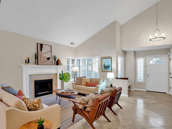 Ideally located in Walnut Creek, this corner end unit is walking distance to shopping, restaurants & BART.Step inside the open living & dining rooms w/ soaring ceilings, sleek tile flooring throughout, gas fireplace & bright front windows boasting tons of natural light.Beautiful dining area enjoys a modern chandelier, adjacent wet bar & sliding glass doors to the private patio.The updated kitchen offers SS appliances, recessed lighting, plenty of storage space, gas cooktop & kitchen island w/ modern black quartz waterfall edge island & wine fridge, & slider glass doors.Main floor also includes a bonus room, & bath convenient for guests.Upstairs find the spacious primary suite offering large windows & 2 sets of closets w/ mirrored doors.Bath ensuite features a soaking tub, 2x sink vanity & walk in shower. Enjoy 2 additional bedrooms with spacious closets & 2 baths.HOA amenities include a community swimming pool & tennis courts.Close to shopping, K-12 schools, BART & commute corridors.