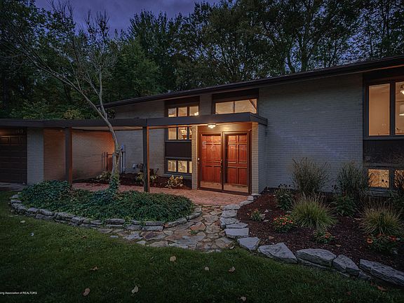 This Mid-Century Modern in the heart of the Pinecrest neighborhood has plenty of space to work / school from home with 5 bedrooms. The location can't be beat as it is just blocks from the new elementary school, playground and numerous parks and trails. It is close to MSU and US 127. The home has welcoming double front doors, beautiful hardwood floors throughout and has 2 fireplaces. The updated kitchen has a new stainless refrigerator and range hood. The main floor has 3 bedrooms and 1.5 baths with an additional 2 bedrooms and a full bath in the walk out lower level. The expansive back yard even has a new firepit for outdoor entertaining.