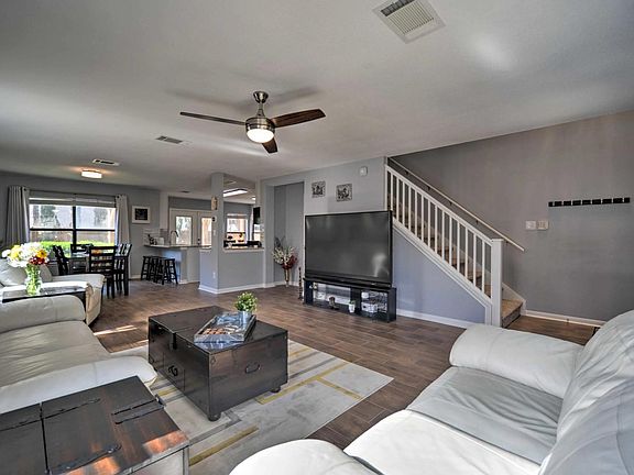 Fully-furnished home situated within walking distance of Gruene and the Guadalupe River, this 3-bedroom, 2.5-bath home offers a well-equipped space. Spend your days exploring the endless outdoor attractions, trying the local eats at The Gristmill, or road tripping to San Antonio. Then, wind down the night under the stars with a freshly grilled meal and a round of cocktails in the private yard. This sun-soaked space is a must-stay! 2,200 Sq Ft | Gas Grill | Patio Featuring a sunny patio, a full kitchen, and easy access to tons of New Braunfels hot spots, this welcoming vacation rental is the perfect place for a fun-filled family adventure or an action-packed weekend with friends. Bedroom 1: King Bed, Queen Sleeper Sofa | Bedroom 2: Queen Bed | Bedroom 3: Full Bed | Additional Sleeping: Queen Air Mattress KITCHEN: Fully equipped w/ stainless steel appliances, drip coffee maker, dishware & flatware, toaster, bar w/ seating, cooking basics, ice maker, knife set, cutting boards, glassware, waffle iron, indoor grill, pots & pans, wine key INDOOR LIVING: Apple TVs, 2 dining tables, ceiling fans, open floor plan, desks & blackout curtains in every room OUTDOOR HANGOUT: Fire pit w/ seating, private yard, lounge furniture, string lights GENERAL: Free WiFi (200 Mbps), washer & dryer, laundry detergent, towels & linens, complimentary toiletries, central A/C & heat, keyless entry, beach towels, hair dryer, hangers, iron & board, trash bags & paper towels FAQ: 3 external security devices (facing out), bedrooms/full bathrooms on 2nd floor, 2 small steps for entry PARKING: Driveway (4 vehicles), garage (1 vehicle), electric car charging station available, limited street parking All utilities included (water/trash/recycling/electric/broadband-wifi). Weekly lawn maintenance is also included.. House is fully furnished, and includes a fully stocked kitchen.