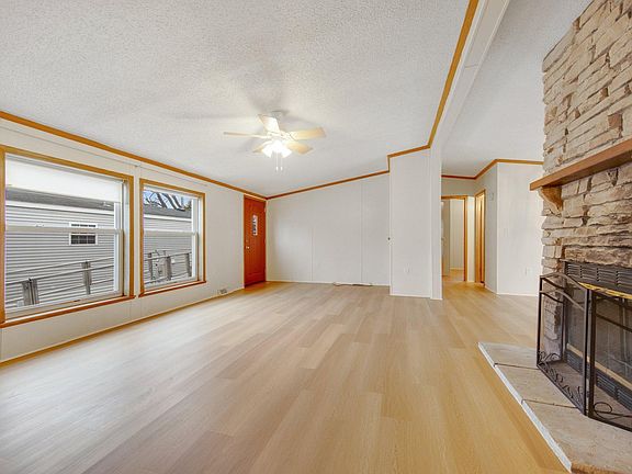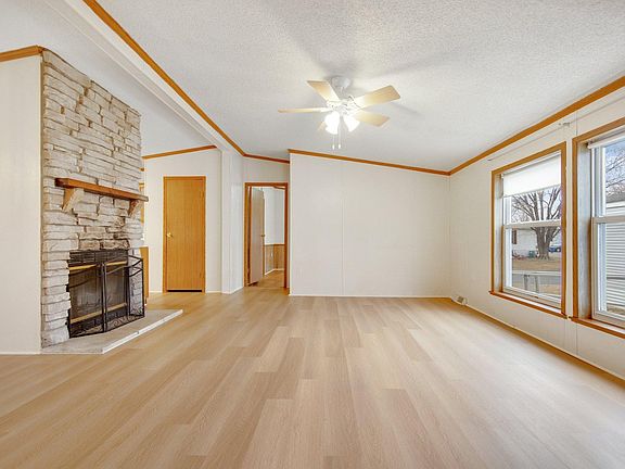 Enjoy main-floor living in this inviting home featuring three bedrooms and two bathrooms. The spacious living and dining areas provide a comfortable setting for relaxation and entertaining. Recent updates include newer kitchen appliances, luxury vinyl plank flooring, upgraded windows, entry doors, and a sliding glass door. The primary bathroom offers both a tub and a shower. Lot fee is $730/month. Conveniently located near 35W for easy access to shopping, dining, and more.