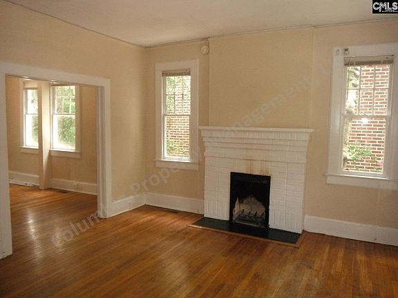 3 bedrooms, 1 bathroom, living room, dining room, kitchen with stove and refrigerator, laundry room with washer and dryer connections. Hardwood floors, central heating and air, off-street parking, water included, restriction on pets. Spacious rooms/high ceilings. Stucco townhouse located in Wales Garden in nice residential neighborhood convenient to USC, 5 Points, Shandon/downtown.