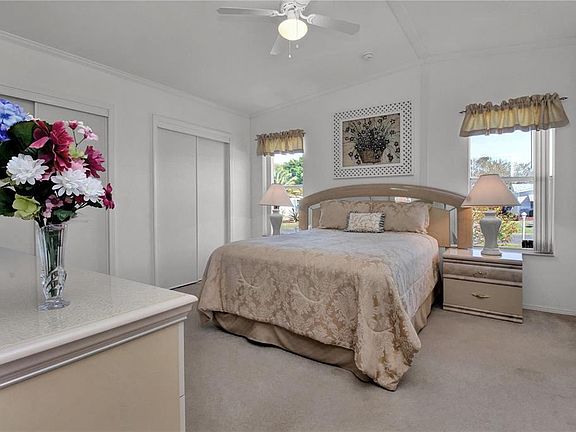Hurry and check out this *immaculate fully furnished* 2 bedroom 2 bath home nestled in the beautiful 55+ community of Rivers Edge! Rivers Edge Property Homeowners Association (REPHA) is a Senior (over 55) Residential Park located on the Peace River North of Punta Gorda, Florida. This well maintained home has so many perks such as an attached storage shed, professionally tinted windows, sun porch, sun room and has a long driveway with covered parking. Golf carts are allowed. BONUS- you won't need to worry about the big pricey items either because this home has a brand new roof (2021), new AC (2020), new refrigerator (2022) and new water heater (2021). This lovely neighborhood has a very low HOA fee of only $100 per month (yes really!) and is located on Hunter Creek. It has everything you need to start living your best life in sunny southwest Florida! Enjoy evening strolls past beautifully kept yards or take in sunsets from your lovely large screened in back porch overlooking the pond. Catch fish off the community dock or have a swim in the community pool. There is so much to enjoy here including a golf course just 5 minutes down the road! If you prefer, you can simply enjoy the serene calmness of this community or you can join in fun community activities such as pokeno, bunko and pool parties complete with local musicians sometimes providing the entertainment! The fully equipped recreational facility offers a fitness center, kitchen, reading library, social community dinners and fun game nights! Everything you've been looking for can be found right here, so schedule your appointment today as this will not last very long in today's market!