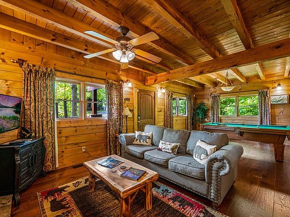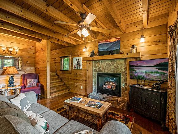 LOCATION x 3! This beautiful, cabin is cozy yet spacious, and has been meticulously maintained and cared for by the current owners. The log cabin is in a mountain setting, on a short street with a few other rental cabins, and less than 3 miles to the main Parkway and Dollywood in Pigeon Forge. The owners have taken much pride in the upkeep of this cabin and have made many updates including new HVAC system (2021), wood floors on the main level, updated appliances, granite countertops, and custom drapes to name a few. This outstanding property has more than 260 five-star reviews, which can be assumed by new owners. The cabin is tucked behind the hustle and bustle of Pigeon Forge and has the feel of seclusion at the end of the road, next to the woods, with a beautiful mountain view, while providing the convenience of close dining and shopping. The cabin has three porches, two in the front and one out back, with wooded privacy in the back and side of the house. The cabin has premium furnishings, a gas fireplace, hot tub, two flat screen smart TVs, built in hair dryer, washer/dryer and a pool table. The hot tub is located on the private back deck with trees surrounding for privacy, and the front porch swing is one of the only on the street. The porch swing faces the woods with a view of the mountains. The second-floor porch has rocking chairs, a love seat and hosts a great view of the mountains. One large, suite-style, king sized bedroom, and two sofa sleepers can host up to six guests. One and a half bathrooms, a full kitchen and living room make this a consistent guest pleaser. Paved parking in front of the house. You won't want to miss the opportunity to view this outstanding property with excellent guest reviews!