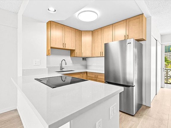 Newly Renovated one bedroom one bath condo with gorgeous city and mountain views off the covered lanai. Enjoy new technology melamine laminate flooring, newly painted interior, new remodeled bathroom including new vanity, toilet and shelving as well as a refinished bath tub and new porcelain tile. The kitchen has new cabinets, new Quartz counters and a new stainless steel refrigerator and range oven. Ceiling fans keep the unit cool and complement the tradewinds flowing in from the lanai and throughout the unit. Community Laundry is located just a few doors away and the unit includes one assigned parking stall just steps away from the front door. A resident manager located on property also adds extra assurance for a well managed building. Conveniently located minutes from the downtown Honolulu and Kakaako neighborhoods, as well as a quick access to the airport and other areas of the island. This larger than average nicely appointed one bedroom condo will bring you the perfect urban lifestyle you've been searching for. Application fee and tenant liability insurance required.