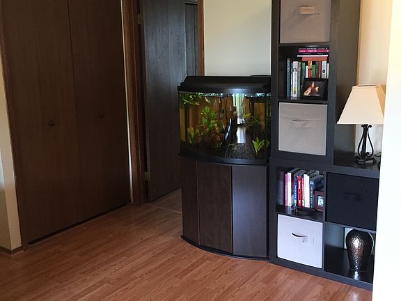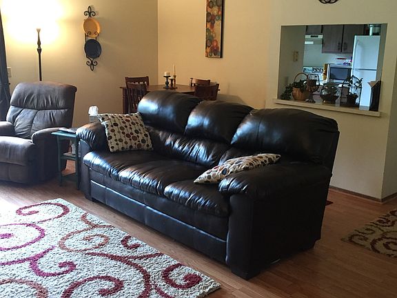 Wood laminate floors, vaulted ceiling in living/dining, wood burning fire place, fenced in patio with private view. Well maintained grounds and quiet. washer/dryer stackable hookup. On site laundry room with 4 washer/dryers for easy/fast laundry. Convenient shopping, restaurants, and entertainment. Park nearby. Snow removal and trash included. Electricity, gas, and water are renter's expenses.