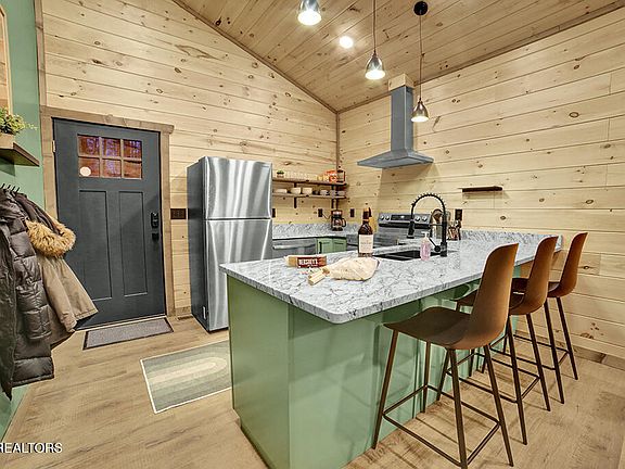 Turn-key and ready to rent! When the current owner purchased, they added some great upgrades right away to make this cabin shine. You'll love the huge deck with plenty of space to entertain and relax, plus all the modern touches inside that make it both stylish and comfortable. This 2BR/2BA cabin has the right layout, sits on a nice rolling lot for privacy and parking, and is less than 10 minutes to The Island in Pigeon Forge and the backroads into the Smokies. Inside, you'll find cathedral ceilings, a perfect mix of tongue-and-groove and modern finishes, guest-friendly waterproof flooring, a tile walk-in shower, stainless appliances, low-maintenance siding, and Trex decking outside. This would be a perfect vacation home or short-term rental, designed with rental performance in mind and truly ready to go.