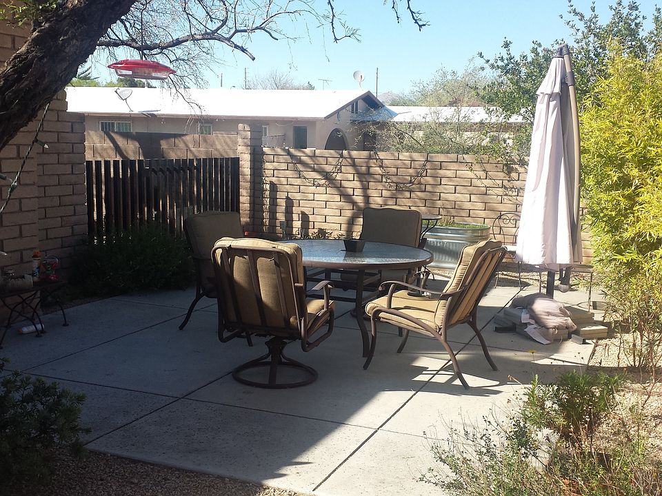 Cute, cozy and updated three bedroom, two bath house for rent near Pima and Swan. Great Central location, close to TMC, U of A, bus and shopping. Lots of Storage. Available by May 1, sooner move-in possible. Relaxing front courtyard with mountain vistas, large fenced backyard, carport, storage sheds. Updated and well-loved by owner. Saltillo tile and carpet. Washer/dryer. Alarm system. Blinds on all windows and doors. Programmable thermostat. No smoking. Background and Credit check required. Owner pays all utilities.