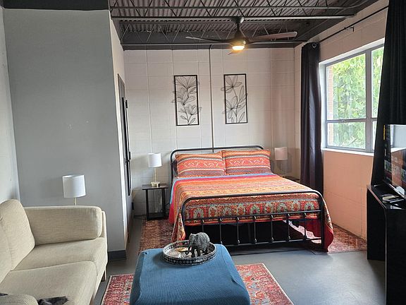 Fully Furnished Bohemian Industrial Studio Near All Hospitals, Colleges and Capitol Flexible lease terms - Please inquire about your specific needs and dates. Price listed is for MONTH TO MONTH fully furnished rental. Currently occupied, next available move in is Sept 1, 2025. Come home to a home, not just a place to sleep. Beautiful memory foam Queen bed with 100% cotton linens, blankets, and coverlet. Darker blackout curtains near bed to help you sleep. Kick your feet up on the extra large ottoman and stream your favorite show on our new Smart TV. Kitchenette has an oven/range, microwave, air fryer, coffee machine, toaster, knives, full set of dishes and utensils for 4 and stainless top kitchen prep counter. Bathroom has fun industrial vibe with a tub and both rain and hand held shower. Eco friendly on demand water heater. Mini split AC/heat keeps it comfortable year round. Free onsite laundry. Secured building. Across the street from Millsaps College, near all hospitals, UMMC, law school, capitol building, Belhaven University, and an easy drive to jobsites including Google, Amazon, and Nissan. Minutes to great dining and entertainment in Belhaven and Fondren. Coffee Prose coffee shop and book store are on the first floor, providing a spot to hang out, including a conference room, that you can reserve for a meeting. All utilities and fiber internet included. Credit and background will be run. Credit must be over 550. $1000 deposit is required. Mandatory $100 cleaning fee. 2 weeks notice to vacate is required. No Pets - No smoking - No Cannabis, Medical or otherwise. $40 application fee includes background and credit check. Full application is required, along with copy of current ID. WE DO NOT USE ZILLOW APPLICATIONS - only our online application that we provide you a link to. MONTH TO MONTH - Not available until after August 31, 2025 - 14 days notice required to leave unit. Price is for month to month furnished rental that includes fiber internet and all utilities. 2 week notice must be given to vacate unit. Mandatory $100 cleaning fee. $1000 deposit. Application fee is $40.