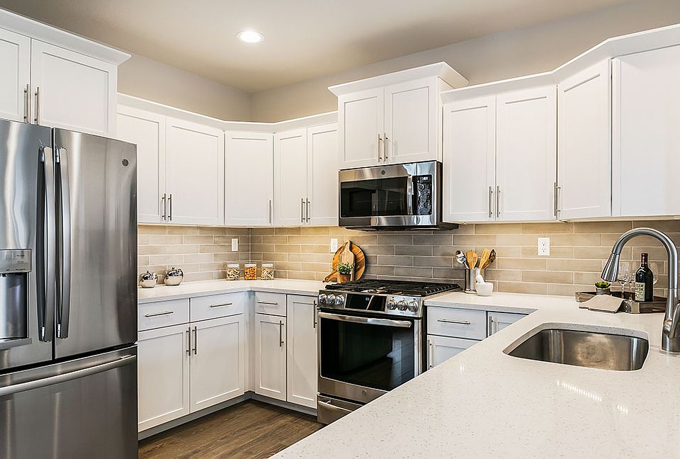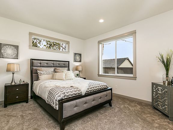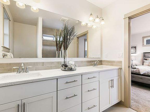 The 1573 square foot Harrison is an intelligently designed two-story home that lives larger than most mid-sized plans. The first floor is home to a main suite with walk-in shower and dual vanity ensuite. The spacious garage is the only shared wall with another home, as part of an efficient and stylish plan. The open living room is adjoined by the dining room and kitchen, which boasts ample counter space and cupboard storage. Near the entry is a convenient powder room for guests. Upstairs, two sizeable bedrooms offer large closets and share the second full bathroom. An optional desk in the loft area offers convenience and organization. It's clear why this home continues to attract discerning homebuyers.