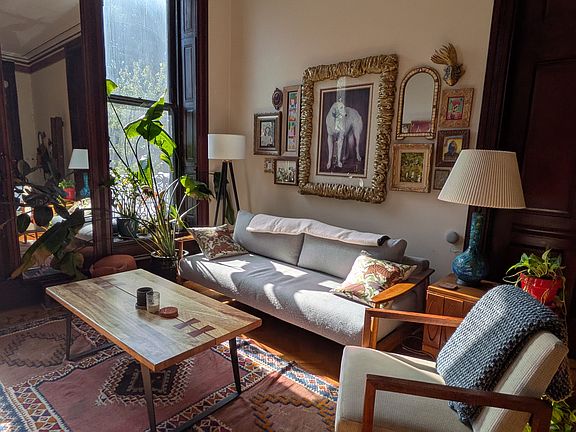 Second bedroom available for rent in a spacious two-story rowhome in beautiful Bolton Hill. Bedroom has it's own full bath a few steps down the hallway. Shared spaces include a large kitchen, two living areas, laundry room, and outdoor patio with gas grill. The building is old and ornate, with stunning details - but be mindful its age also means it's not perfect: cabinet doors stick, a few of the windows are painted shut, etc. The apartment is largely well furnished (as pictured - and I hope you like plants & weird art!), but I welcome any additions you have to the space. If you're interested please let me know a bit about yourself: age, employment, hobbies, etc - and we can see if there's a good match. Initial lease is through August 2026 to align with the current occupant's agreement. Should be renewable yearly after that.