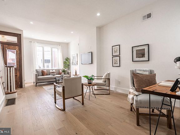 We are proud to present this charming and tastefully designed home in the heart of Point Breeze. This classic Philadelphia townhome was completely renovated in 2023. Adorned with original reclaimed solid oak doors, a classic vestibule invites you into an open-concept floorplan featuring 10' ceilings and Mohawk engineered oak floors. A gracefully ascending staircase that echoes a sense of timeless craftsmanship anchors the oversized living room. The meticulously designed kitchen features natural quartz countertops and a bespoke tile backsplash that exudes luxury. Behind the kitchen sits a bonus room currently set up as an office, with a powder room. Upstairs the sunny rear bedroom features an ensuite bathroom with more bespoke tiles in the walk-in shower. 2 more sizable bedrooms and a hall bathroom grace this floor. Downstairs a fully finished basement awaits, a great space for entertaining, while also discreetly housing the washer and dryer. Don't miss this opportunity to make this exceptional residence your own.