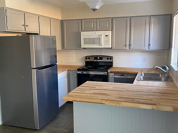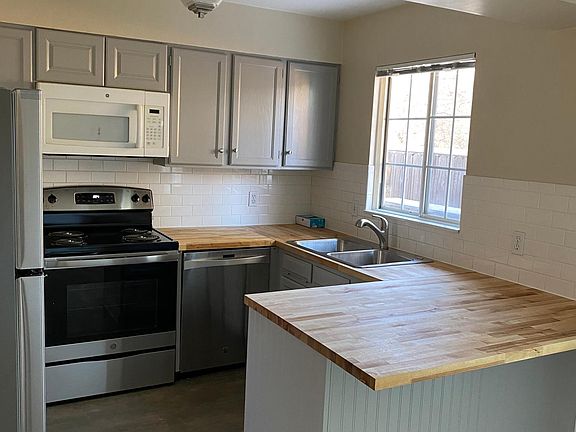 Updated kitchen with butcher block counters & SS appliances. 3 beds 1 bath 2nd floor, 1/2 bath main level, full bath & bedroom (nonconforming) & play space & laundry in the basement. Backs to open space in Sunstone HOA. Pool is short walk from tnhm. Plenty of parking.