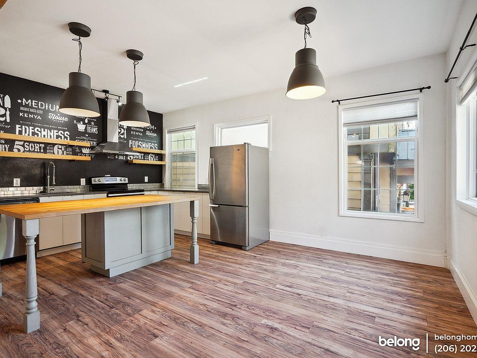 Situated between Cap Hill, Downtown, and the Central District, this beautifully renovated duplex unit epitomizes modern urban living. Hardwood floors stretch across the open-concept living area, complemented by large windows that bathe the space in natural light. Blinds on each window ensure you can control privacy and light levels to suit your needs. The well-appointed kitchen features a refrigerator, dishwasher, and a 4-burner electric range with oven and vented hood. A large center table here functions as extra workspace as well as a dining area, comfortably seating sixa perfect spot for preparing meals or hosting friends. Barn doors add a rustic touch to the modern aesthetic in all three bedrooms. The full bathroom is both functional and stylish, while the in-unit laundry with a stacked washer and dryer adds a layer of convenience. Additional amenities include a radiant heater and a shared water heater, ensuring comfort and efficiency throughout the year. At the back, a small deck provides a cozy outdoor retreat. The prime location offers unparalleled convenience, with hospitals, shopping centers, grocery stores, parks, and entertainment venues just a short walk away. Proximity to schools and various public transportation optionsbuses, trams, and trainsmakes commuting to SeaTac Airport, downtown, the University District, and beyond a breeze. This home is perfect for those who seek a blend of contemporary living and easy access to the best of what the city offers.